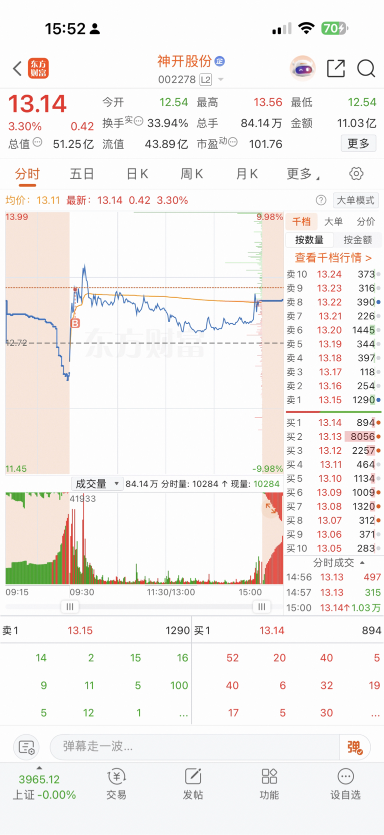 $神开股份(SZ002278)$ 盘中看12.80上方一直跌不下去,就感觉有戏,全天波动还蛮大的