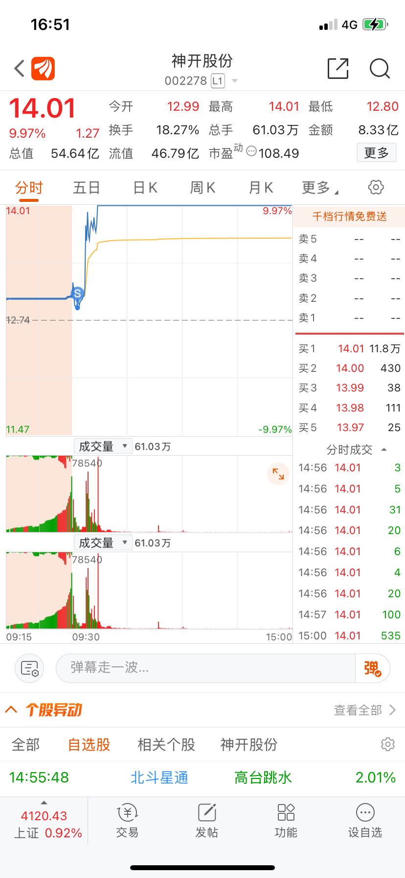 $神开股份(SZ002278)$ 真是优秀的超盘手