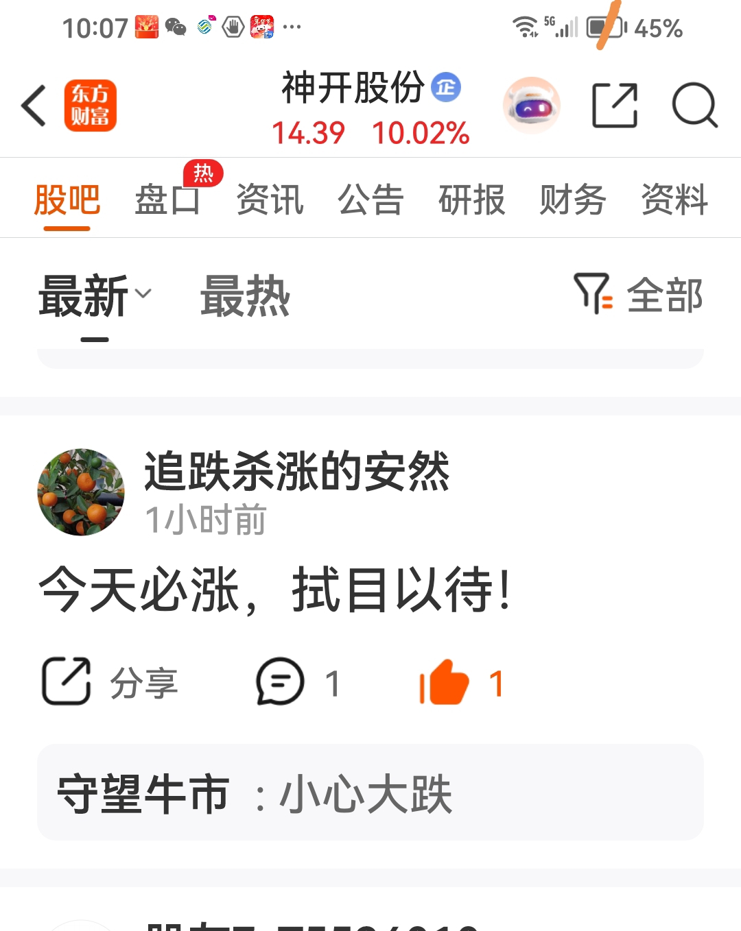 $神开股份(SZ002278)$ 牛,真牛!早上开盘前,判断这股今天必涨,没想到能涨停,昨天尾盘加了仓,我持有的另一只顺纳股份已三连板了。