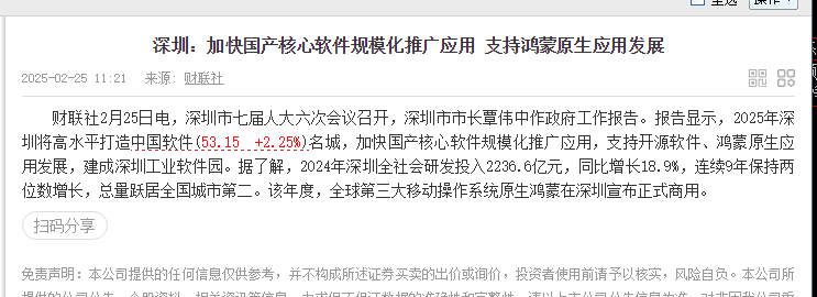 深圳:加快国产核心软件规模化推广应用支持鸿蒙原生应用发展