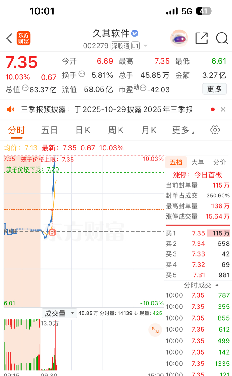 $久其软件(SZ002279)$ 增持了14手,明天出