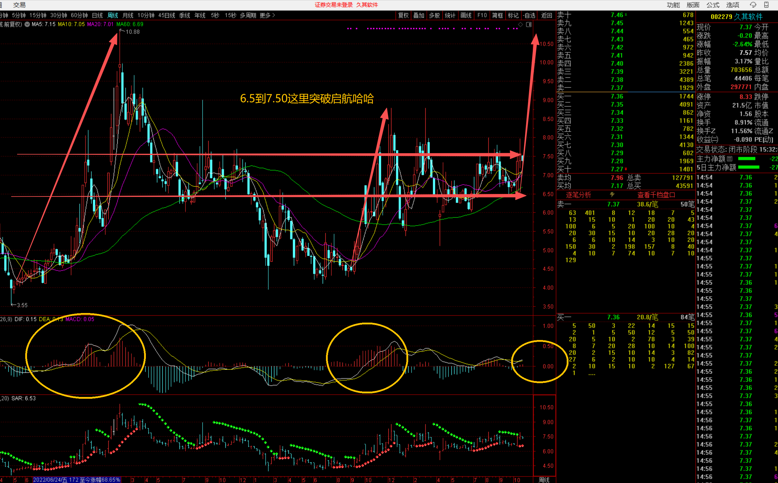 6.50到7.50这里突破启航哈哈、这次到13块我们见证!