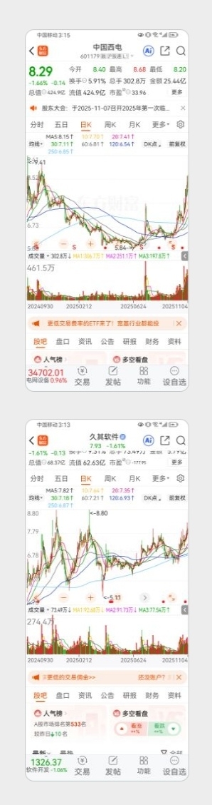为什么发两个图,就是通过两只股票走势比较,去了解主力。上面图走的干净利落,跌就干干净净的跌,洗盘横盘都清晰可见。这表明什么,主力控盘极强。看下面这图走的,稀烂。为什么,控盘力度不够,无法掌控局面,所以线条就不流畅。这说明主力资金不行,所以拉升都是快速对倒,挺不了多久就掉下来,筹码不够,时间这么长,还走出这德行,说明这个主力差钱。久其特别喜欢打板,速度都是很快,如果你当这是强势看就大错特错,他们不敢停留太久,只有快速封板,才能让不安分的资金挺住观望。很多人把快速封板理解是资金强势,其实不是的,是弱的表现。为什么要了解这些。先把资金性质搞明白,期望值才能设定搞一下。无论资金行不行,都要赚钱,所以边洗边拉,也就这样走,这每日波动是无法猜测,如果都没猜准了,地球都归他了。那自己怎么操作呢?记住一条规则,主力出货都是拉升过程出货,而不是砸盘出货。除非拉升几倍了,空间很大,可以选择砸盘出货。砸盘出货就是最差的出货方式,如果主力砸盘出货,会惊跑散户,尤其高位,散户不傻的,知道风险的,所以高位的大阳线反而是风险的警示而不是狂欢的乐园。但你想知道哪一个阳线是最后的一根,同样也无法猜测。所以高位要在阳线不断降低仓位就是你应该懂得的操作。至于跌一跌也没什么大不了,也不会退市,主力也要赚钱,牛市散户想赚钱,主力跟我们的想法一样的,怕啥。想知道主力下一刻咋想的,对不起,这是人类无法解决的问题,不要相信哪个大神告诉你他知道,我告诉你他一定是骗子。