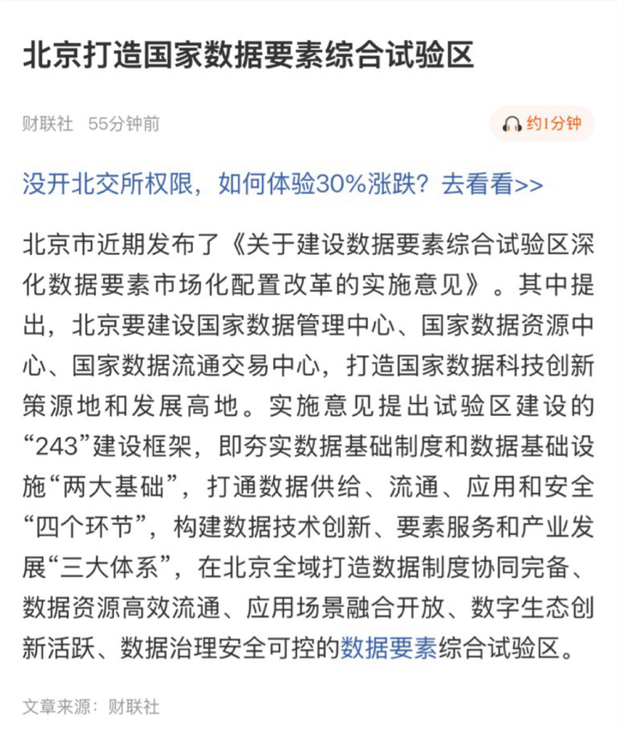 $久其软件(SZ002279)$ 北京打造国家数据要素综合试验区!久其软件总部北京