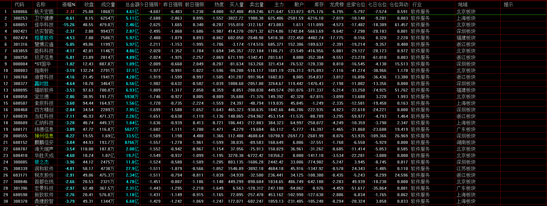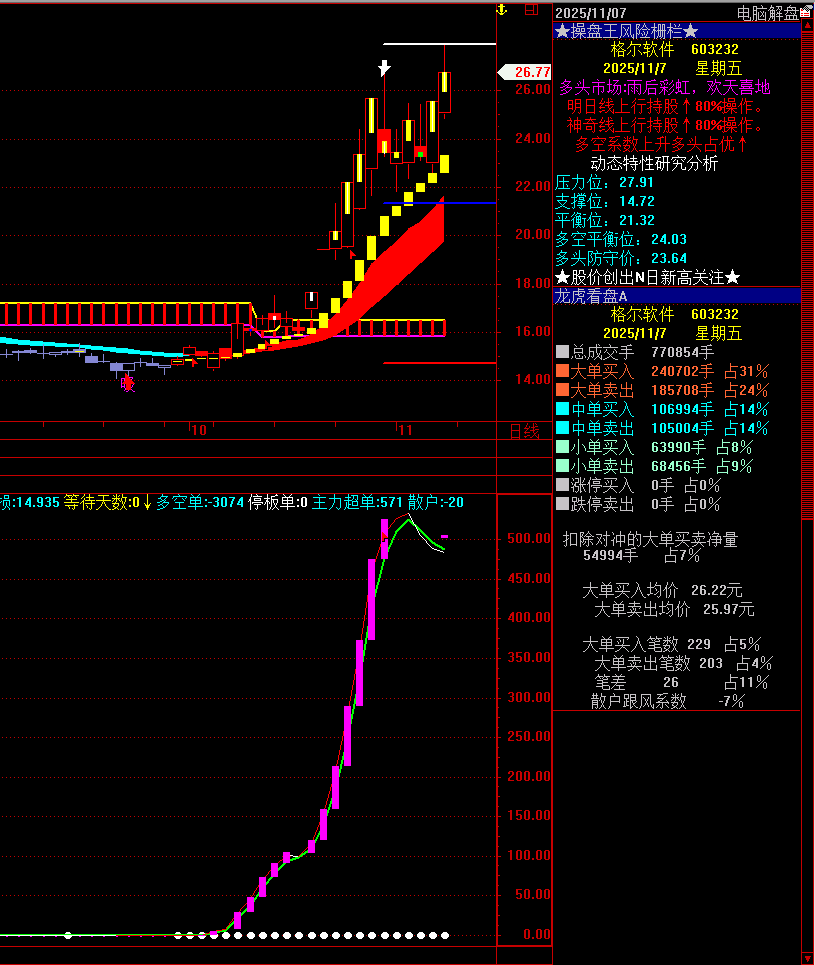 软件板块整体在下跌,只有一只股票格尔软件有短线机会。