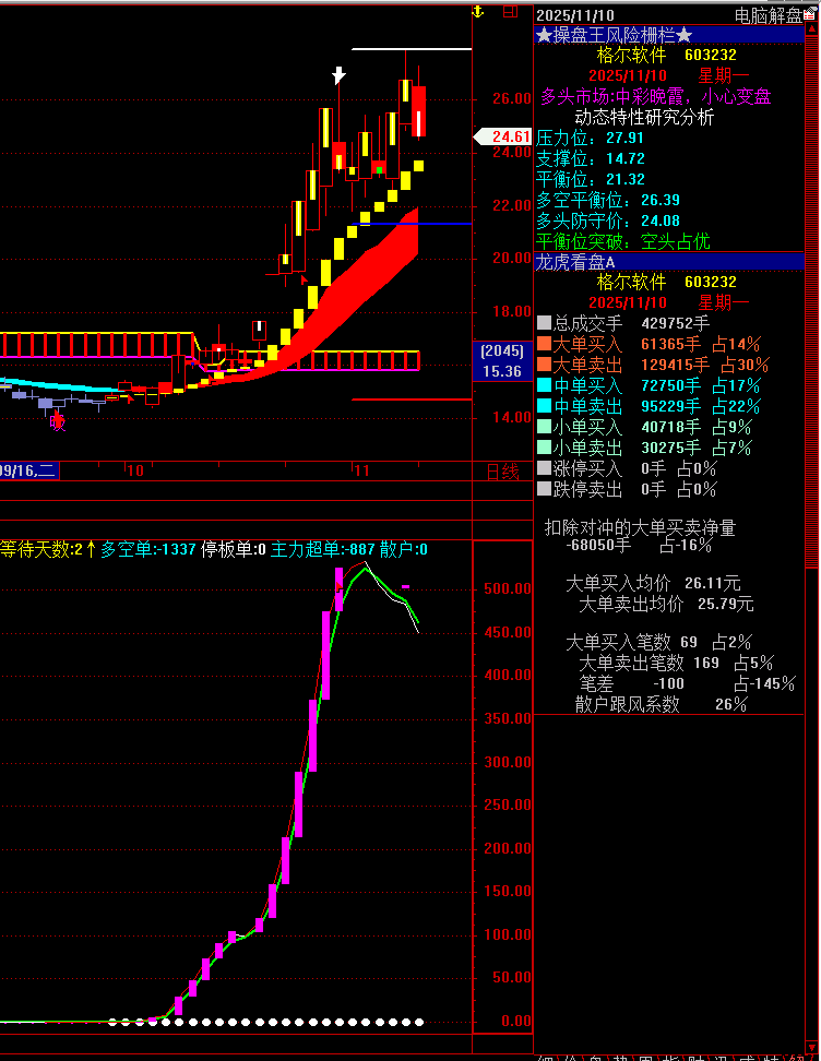 格尔软件龙头倒下,软件板块主力资金离场,数字政通不行,长亮科技不行,久其软件不行
