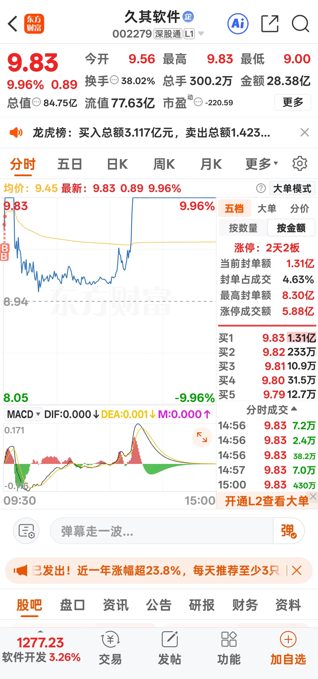 $久其软件(SZ002279)$ 对盘面理解差啦那么一丝还是