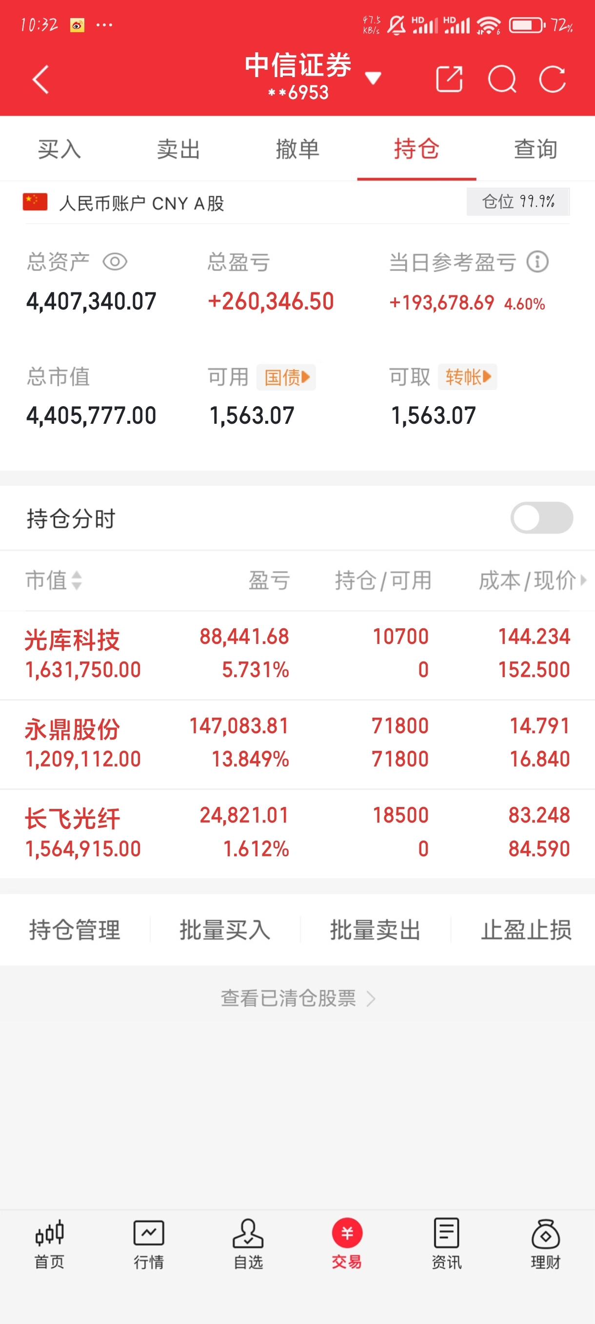 大家上午好,来更新一下持仓,国风新材和光库科技昨天下午给出局了