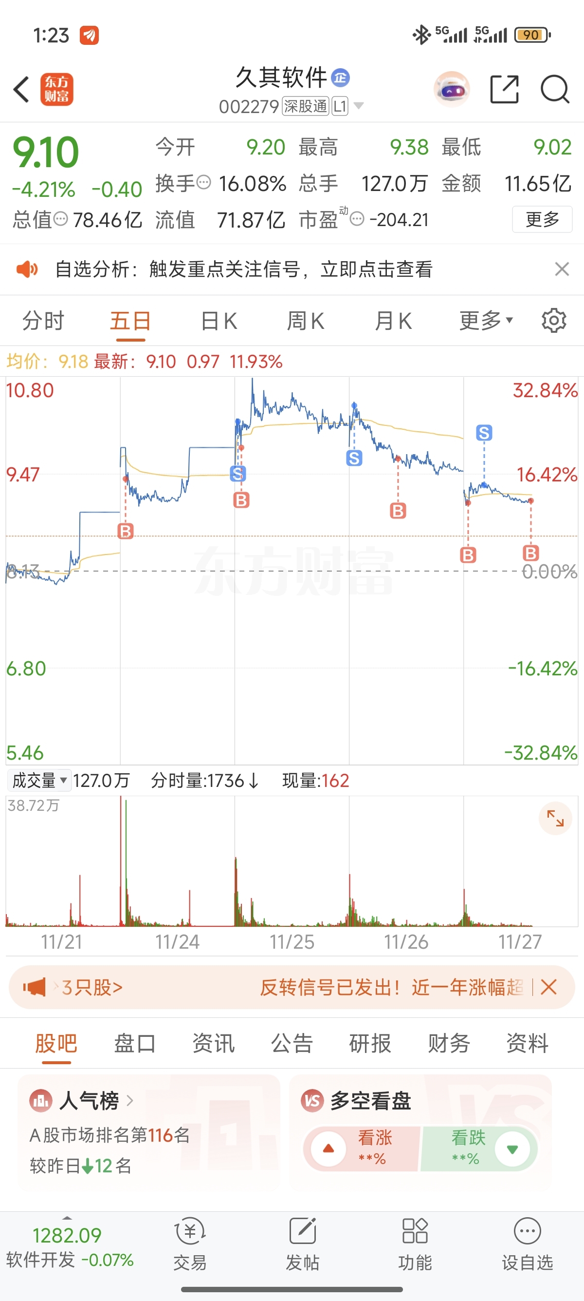 $久其软件(SZ002279)$ 老哥,给点好运吧