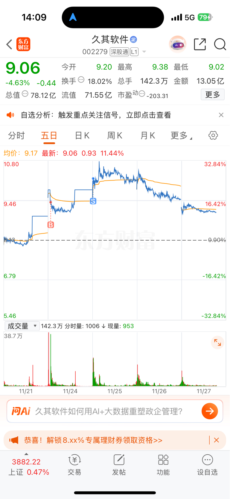 $久其软件(SZ002279)$