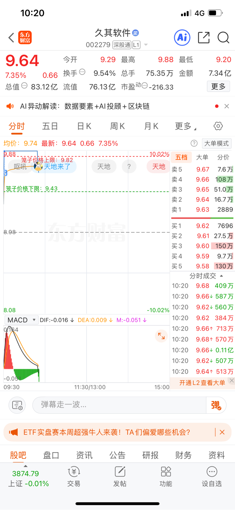 $久其软件(SZ002279)$ 昨天设置的涨停卖,拍断大腿