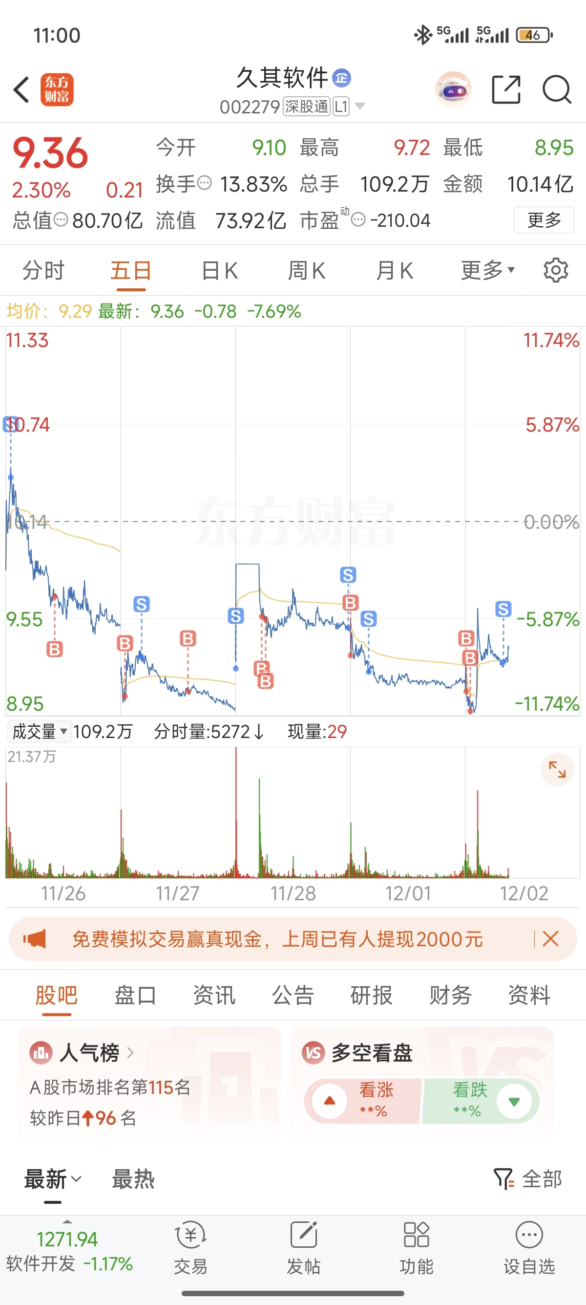 $久其软件(SZ002279)$ 老哥呀,支楞一波吧