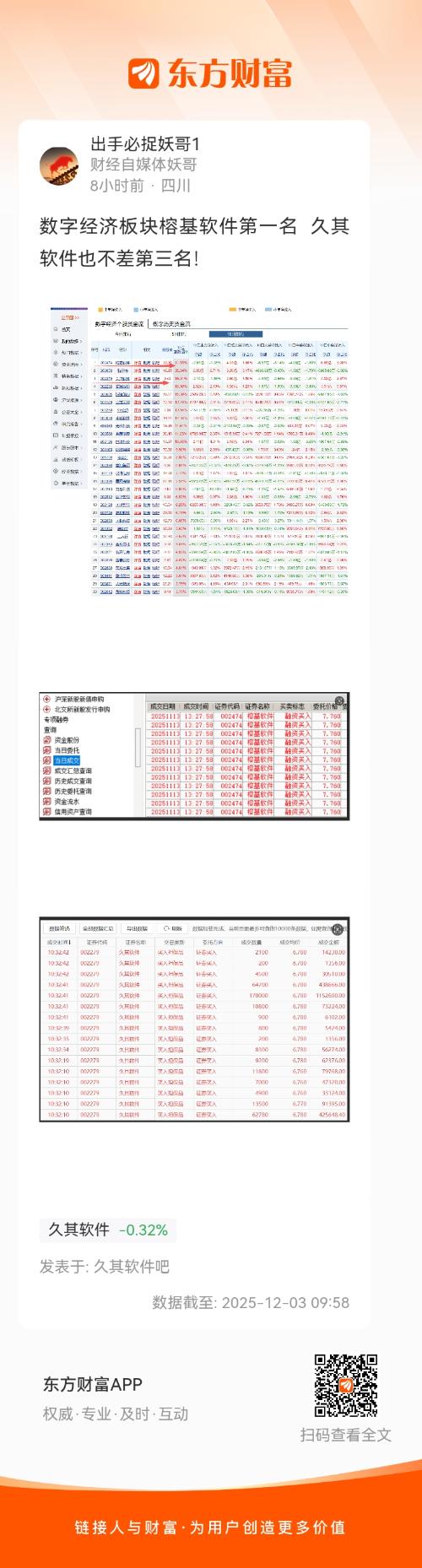数字经济板块榕基软件第一名 久其软件也不差第三名!
