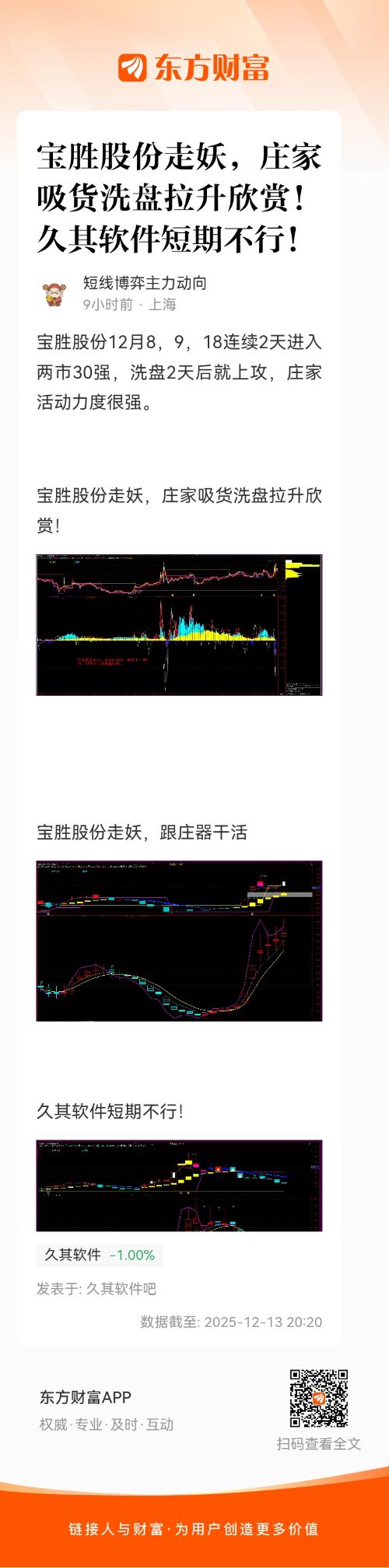 宝胜股份12月8,9,18连续2天进入两市30强,洗盘2天后就上攻,庄家活动力度很强。