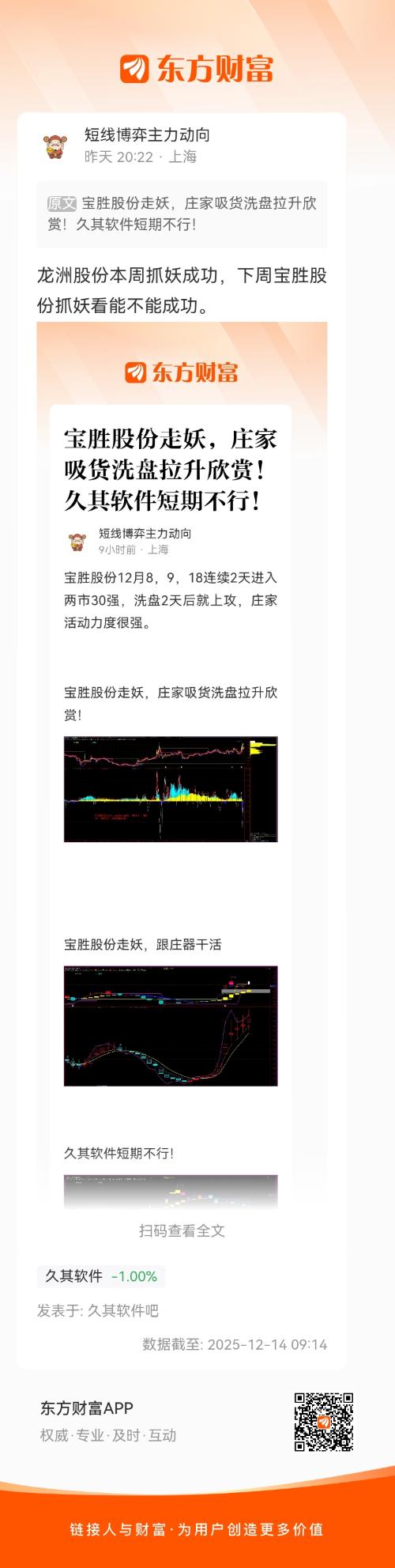 宝胜股份12月8,9,18连续2天进入两市30强,洗盘2天后就上攻,庄家活动力度很强。