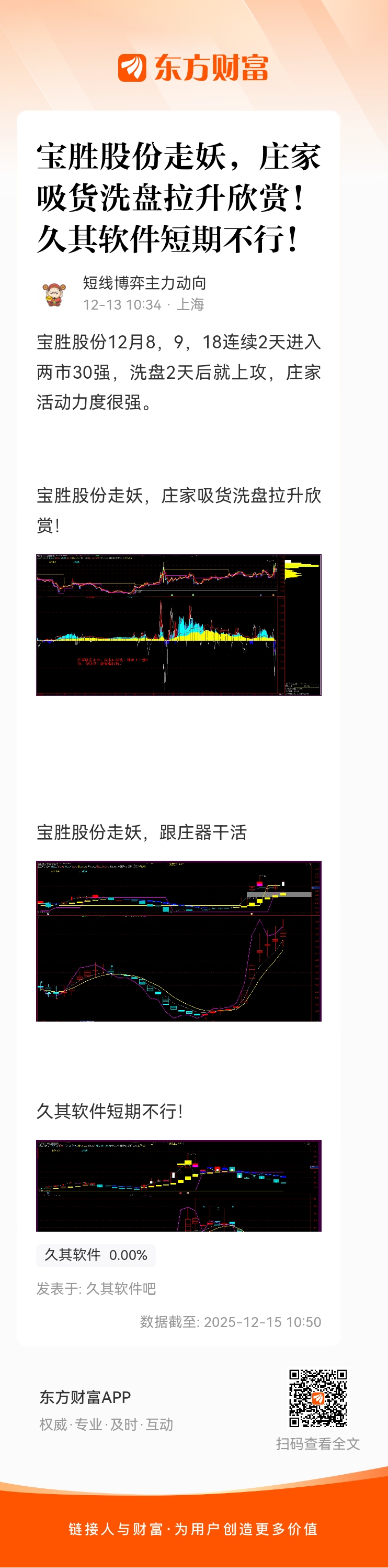 宝胜股份12月8,9,18连续2天进入两市30强,洗盘2天后就上攻,庄家活动力度很强。