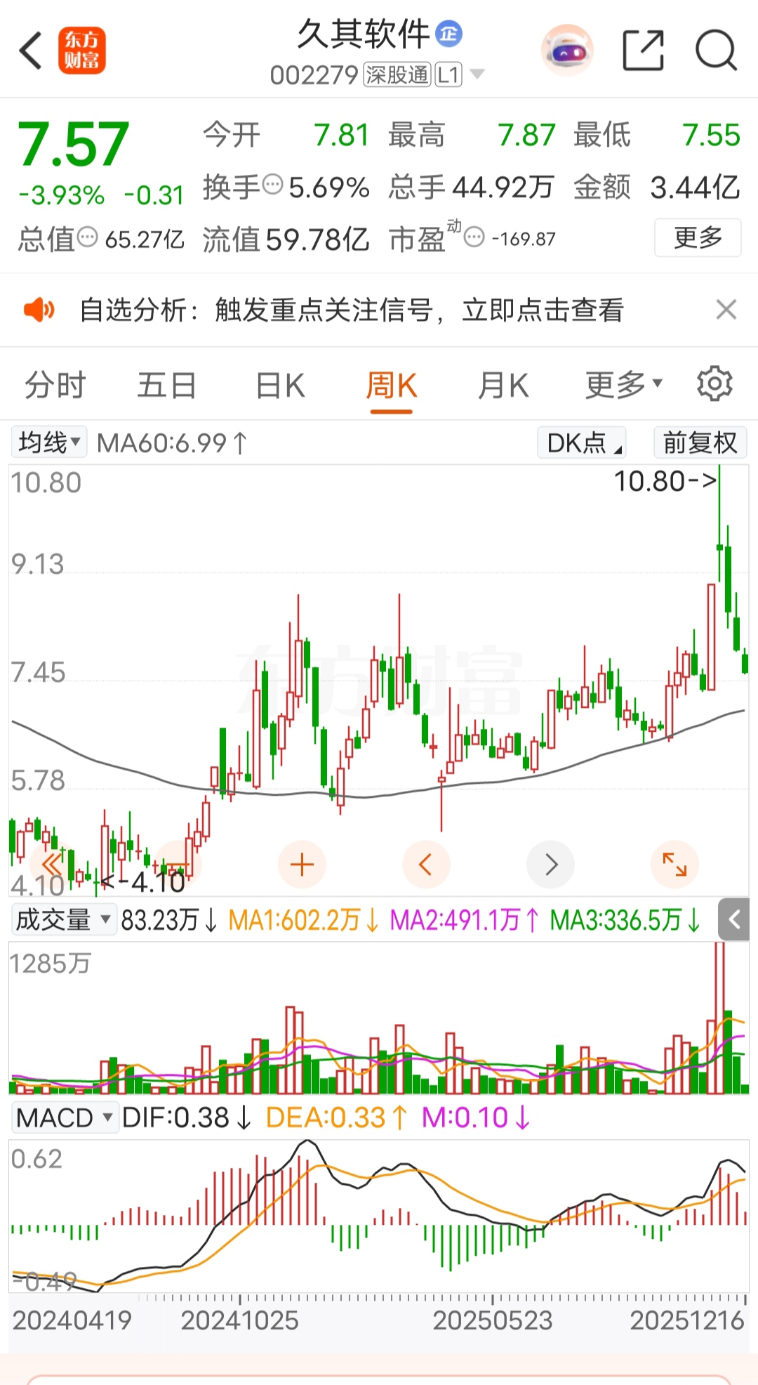 $久其软件(SZ002279)$ 这个角度看还是危险的,大概7块止跌