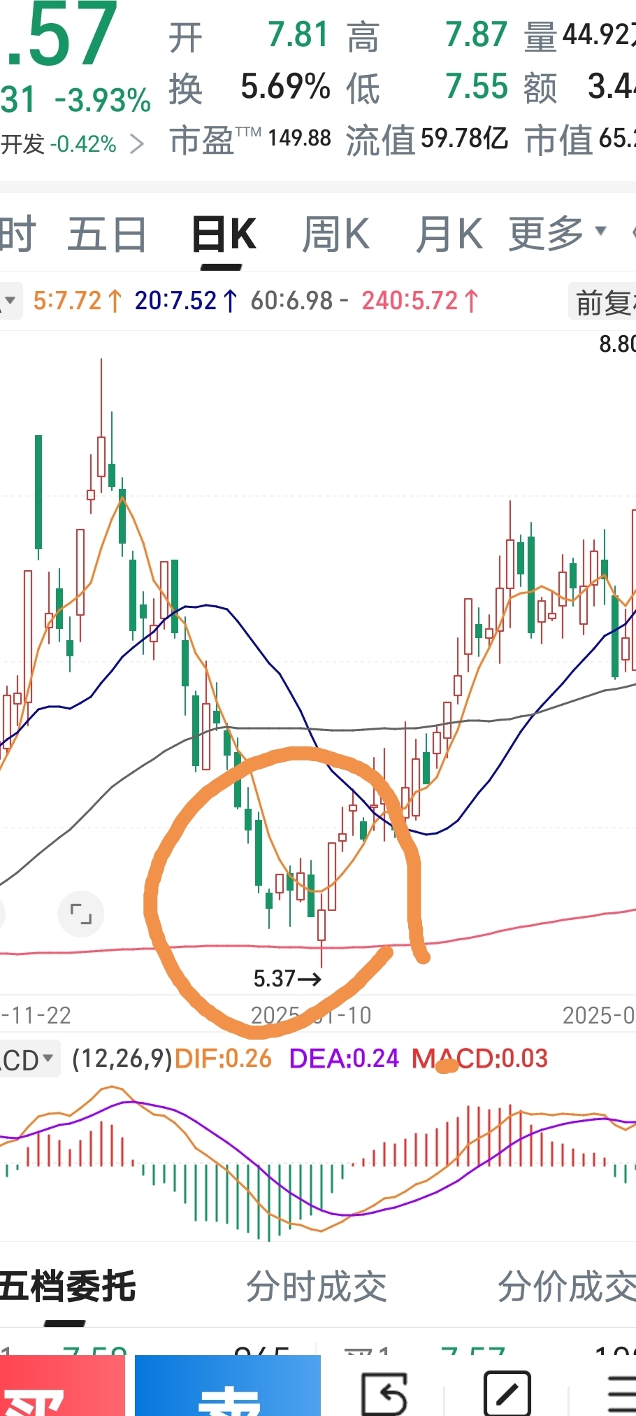看好这个底部结构,结构出来之前,反弹只卖不买,小九一波行情经常这么玩,快速回落支撑位置,所以一般跌下来都是好的抄底位置,性价比比较高,本次下跌大概率可能短暂7元以下,到了再出手。