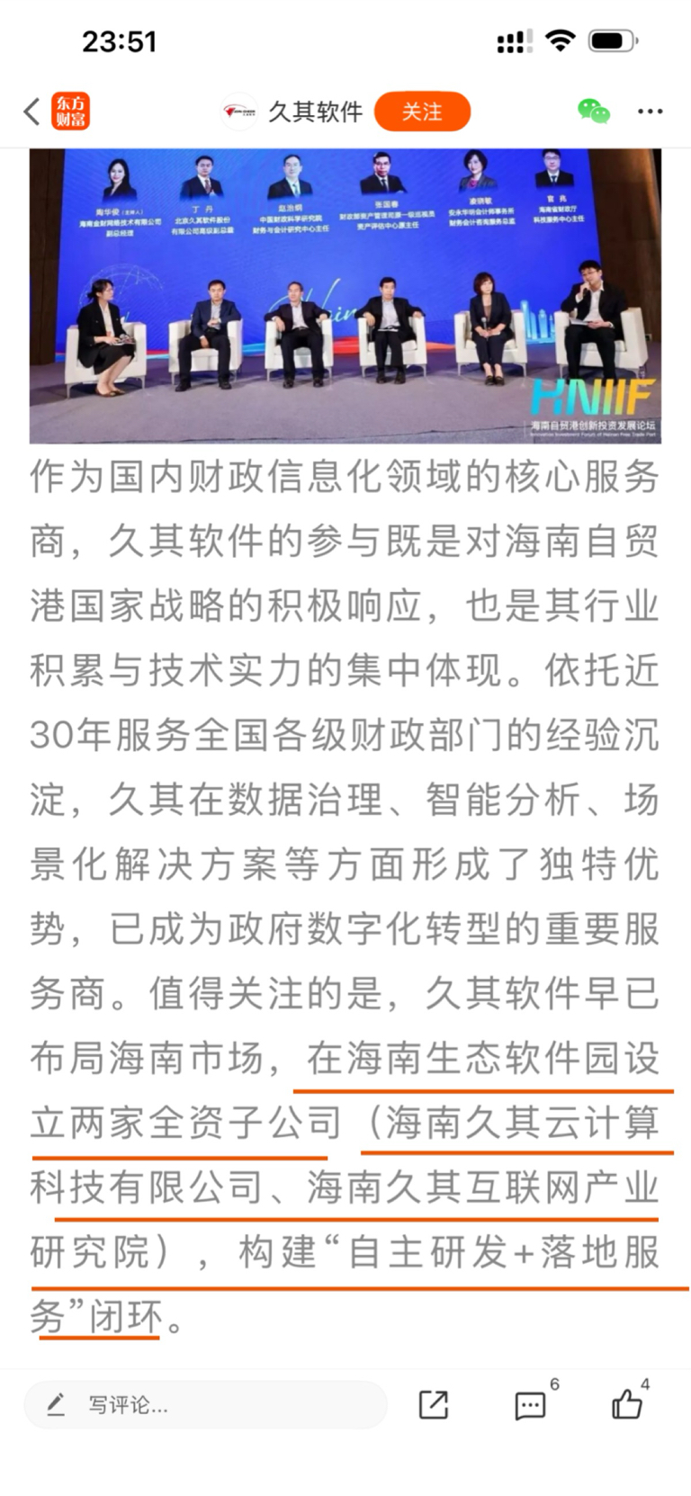 $久其软件(SZ002279)$ 今天海南太强了,整个海南板块都快涨停了,凡事和海南自贸沾边的都涨了!久其软件在海南有两家全资子公司(海南久其云计算、海南久其互联网)这难道不直接受益海南封关所带来的效益吗?这不是最直接的助力海南自贸港数字化建设吗?为啥就是一动不动?这题材风口要是其他公司早都涨飞起,为什么久其就是一动不动?公司难道不希望股价涨?还是公司管理层不作为?