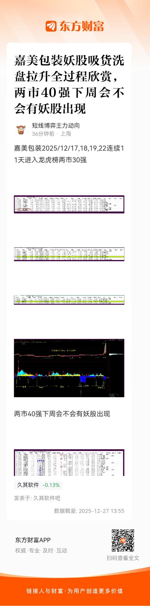 嘉美包装2025/12/17,18,19,22连续11天进入龙虎榜两市30强