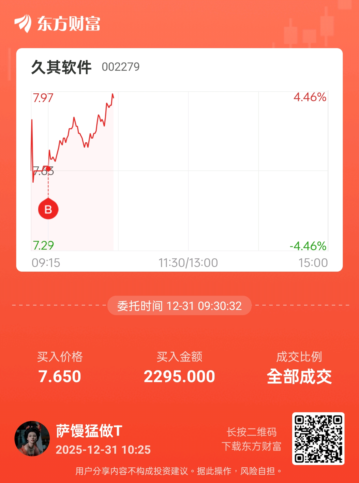 温馨提示: 1.根据《证券法》规定,禁止编造、传播虚假信息或者误导性信息,扰乱证券市场;2.用户在本社区发表的所有资料、言论等仅代表个人观点,与本网站立场无关,不对您构成任何投资建议。用户应基于自己的独立判断,自行决定证券投资并承担相应风险。《东方财富社区管理规定》