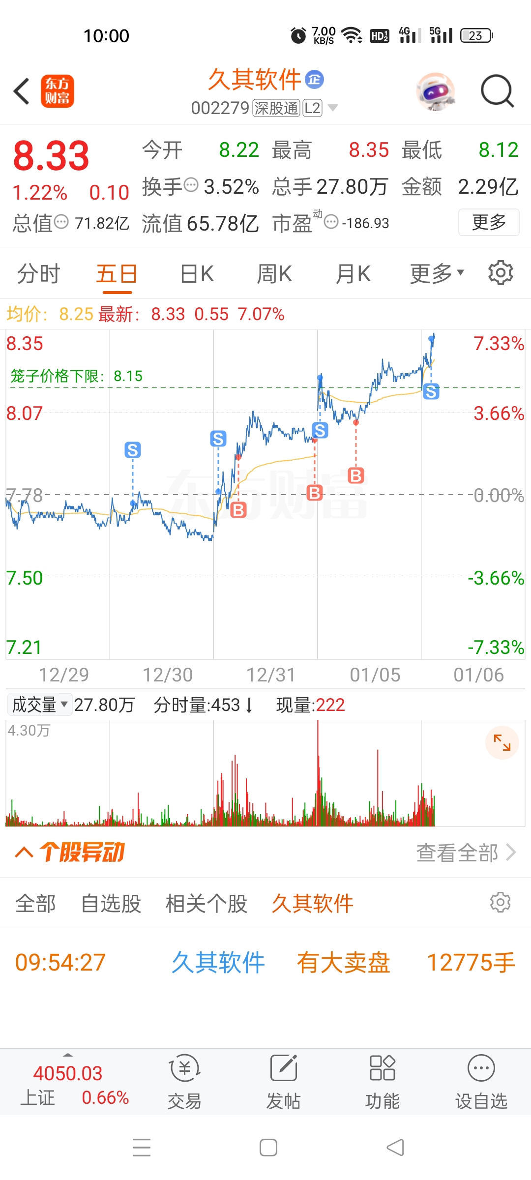 $久其软件(SZ002279)$ 继续等低点买入住第二天卖出