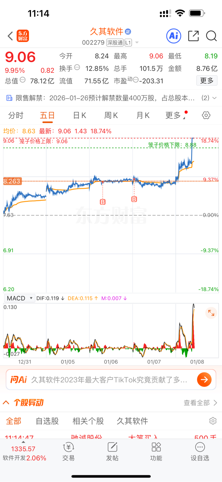$久其软件(SZ002279)$ 看你明天的表演,早上应该加仓的。