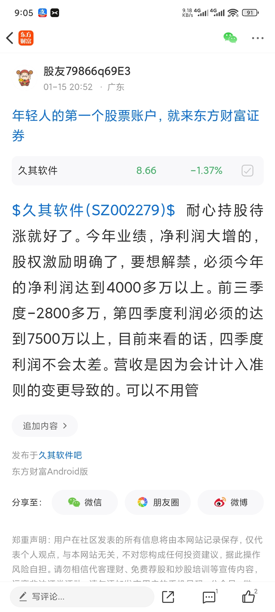 温馨提示: 1.根据《证券法》规定,禁止编造、传播虚假信息或者误导性信息,扰乱证券市场;2.用户在本社区发表的所有资料、言论等仅代表个人观点,与本网站立场无关,不对您构成任何投资建议。用户应基于自己的独立判断,自行决定证券投资并承担相应风险。《东方财富社区管理规定》