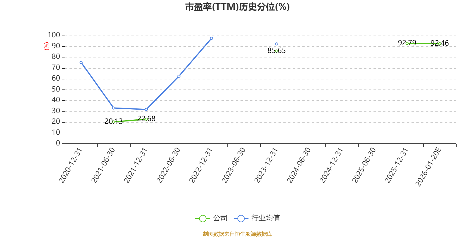 市盈率、市净率为负时,不显示当期分位数,会导致折线图中断。