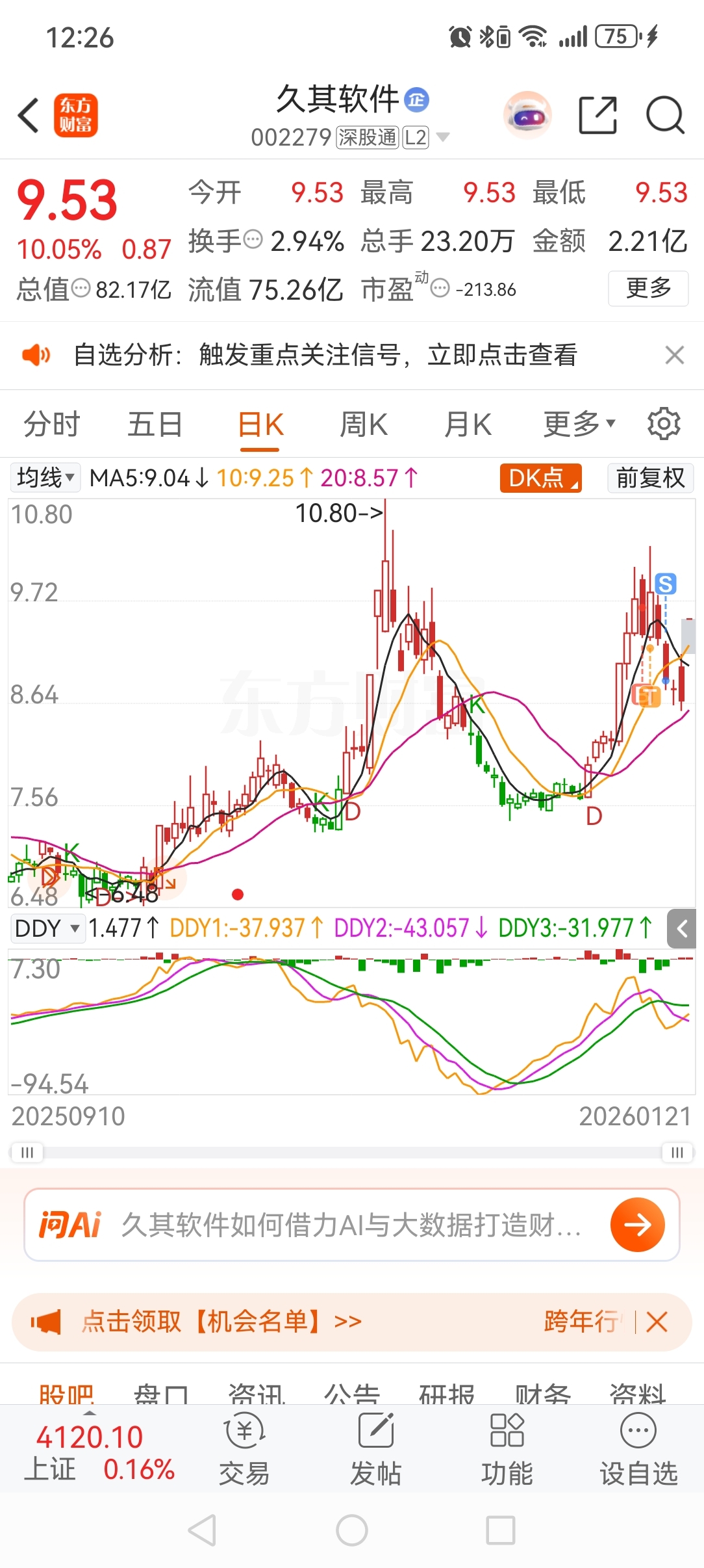 $久其软件(SZ002279)$ 我要再坚持两天不就不赔钱了吗,唉