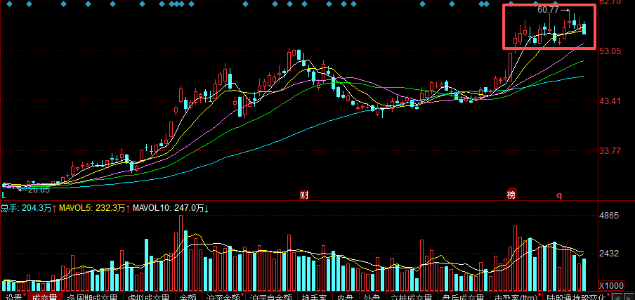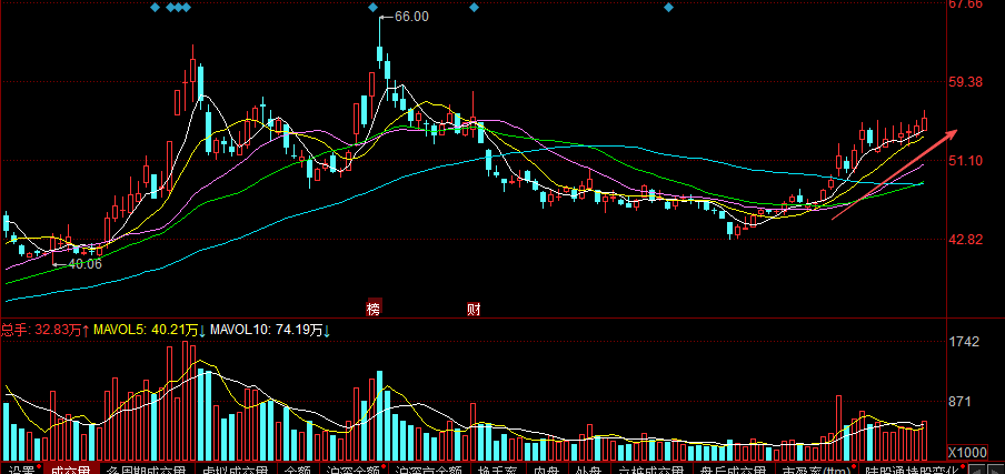 中G稀土:近期股价稳步上行,近几日更是走出七连阳,多方占据明显优势。昨天收出放量阳线,冲高后虽有回落,但形成放量上影线且无下影线,多方主导态势明显,主力明显流入。叠加稀土永磁板块近期发力,短期上升趋势清晰,上涨动力充足。目前上方存在阻力,突破并站稳后表现值得期待,若今天跳空高开突破压力位,上升趋势将进一步。上方第一压力位关注56.5附近,第二压力位关注58.5附近,下方支撑位看5日均线与10日均线,继续观察。