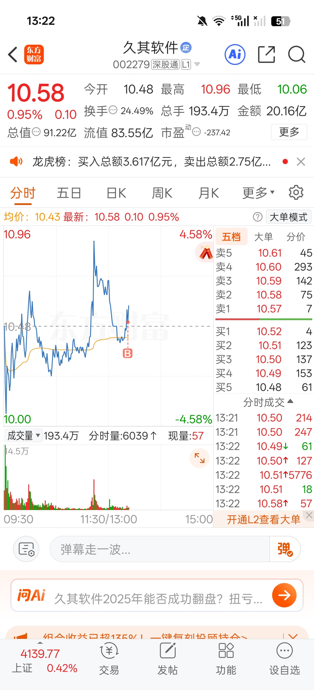 $久其软件(SZ002279)$ 不好意思 我进来了,我一买基本是顶