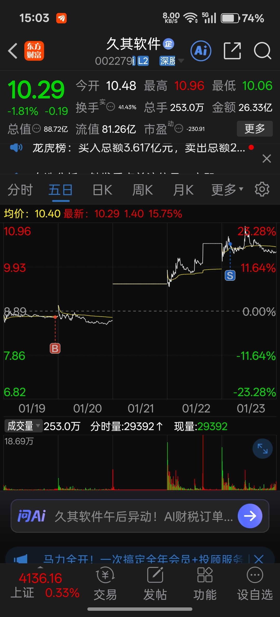 $久其软件(SZ002279)$ 恭喜发财 留下的好运