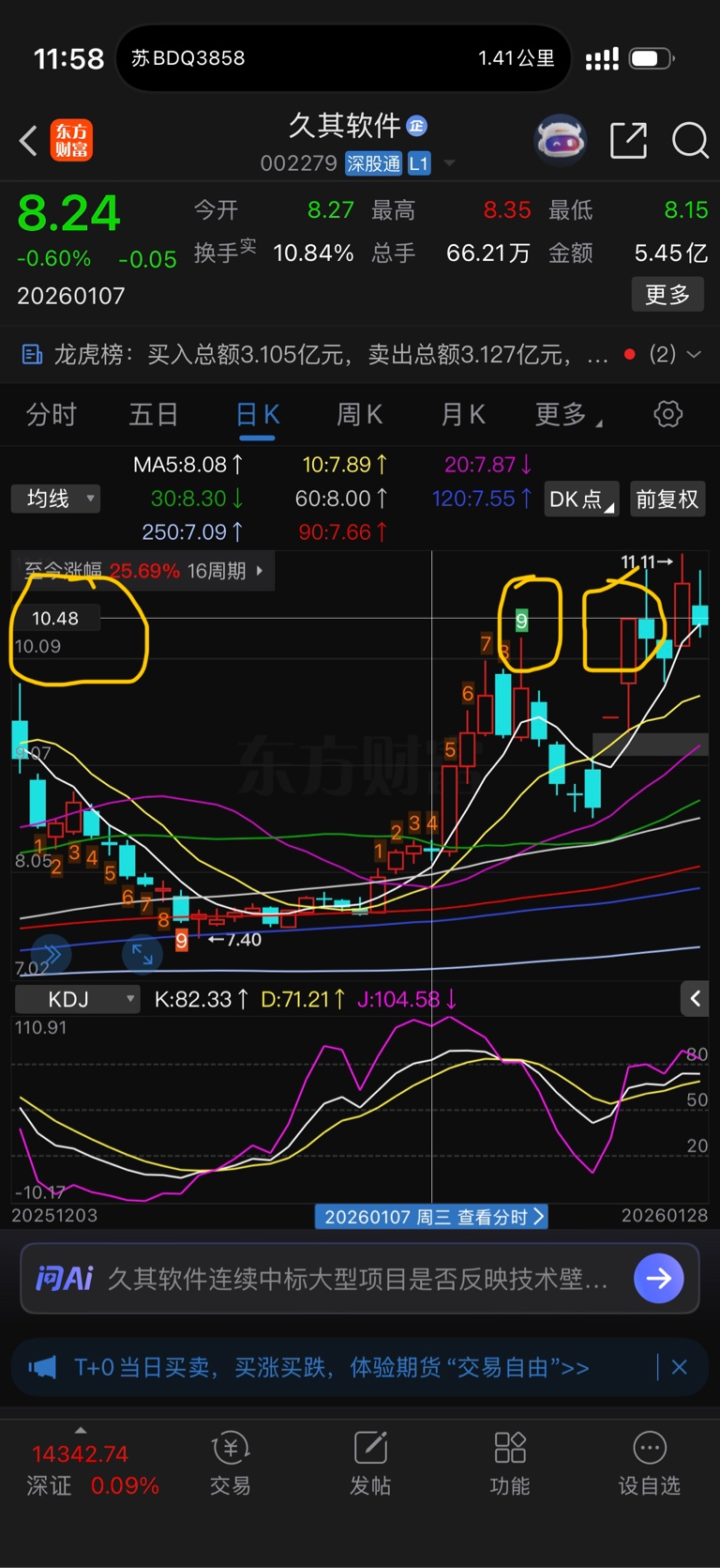$久其软件(SZ002279)$ 技术分析…关键点位10.48…昨日回封失败,今日放量出货,5日线和10日线,10日线和20日线偏离值较大,预计会有一轮大幅杀跌调整,让三线再次拟合,