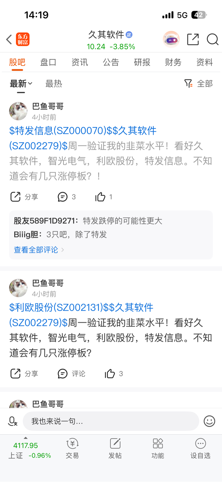 温馨提示: 1.根据《证券法》规定,禁止编造、传播虚假信息或者误导性信息,扰乱证券市场;2.用户在本社区发表的所有资料、言论等仅代表个人观点,与本网站立场无关,不对您构成任何投资建议。用户应基于自己的独立判断,自行决定证券投资并承担相应风险。《东方财富社区管理规定》