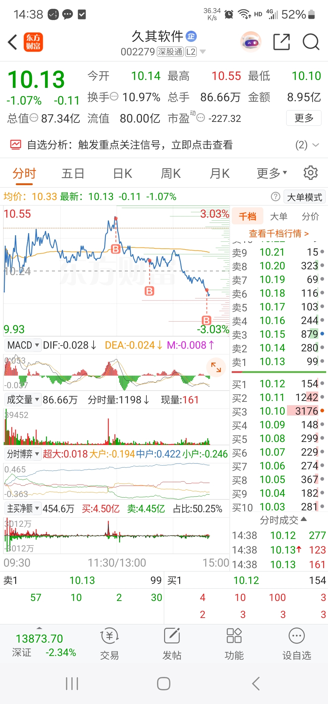 $久其软件(SZ002279)$ 加不动了