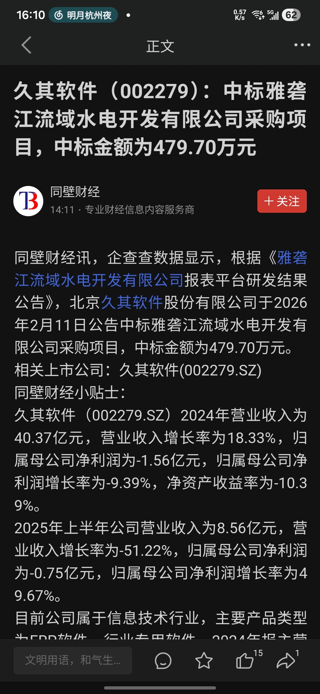 $久其软件(SZ002279)$