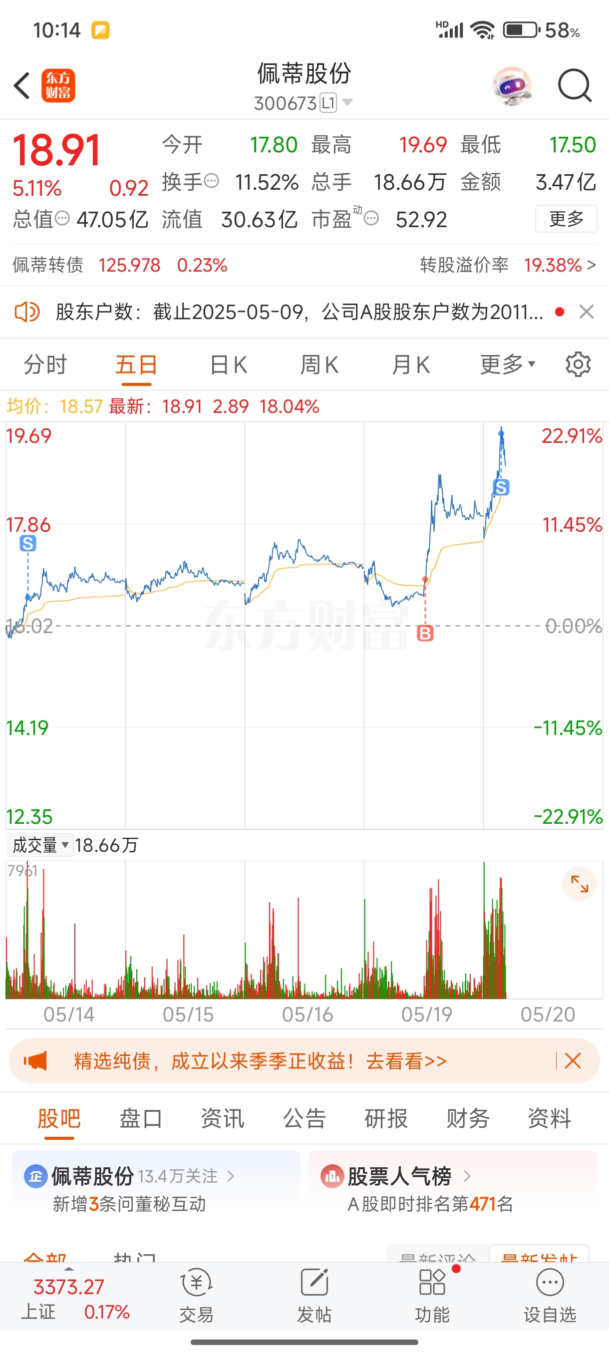 温馨提示: 1.根据《证券法》规定,禁止编造、传播虚假信息或者误导性信息,扰乱证券市场;2.用户在本社区发表的所有资料、言论等仅代表个人观点,与本网站立场无关,不对您构成任何投资建议。用户应基于自己的独立判断,自行决定证券投资并承担相应风险。《东方财富社区管理规定》
