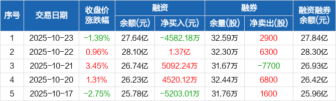 光迅科技:融资净偿还4582.18万元,融资余额27.64亿元(10-23)