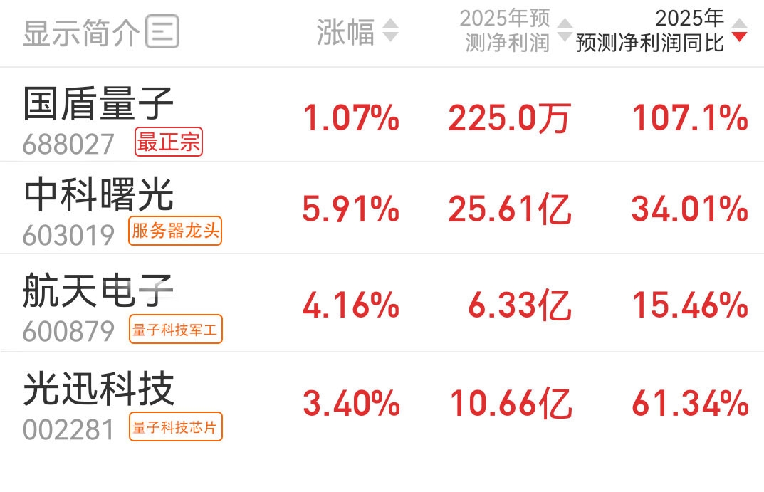 量子科技板块四家细分龙头公司,利润与增速对比!