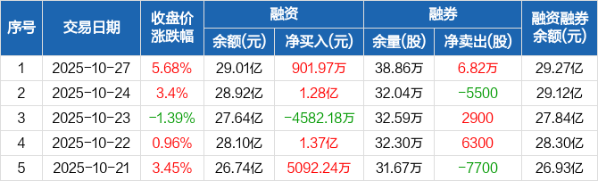 光迅科技:融资净买入901.97万元,融资余额29.01亿元(10-27)