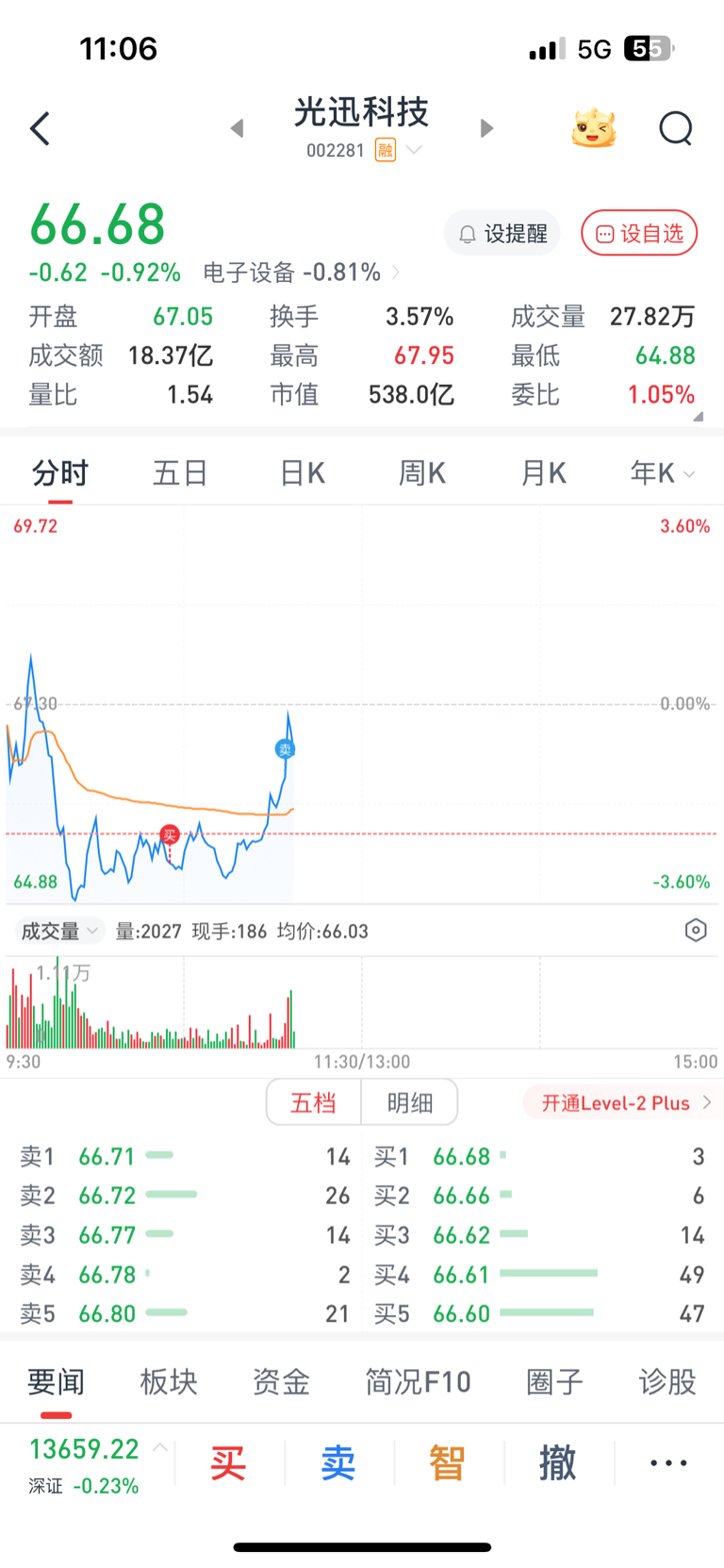 $光迅科技(SZ002281)$ 啥都涨,就是cpo不涨!下午看反包!