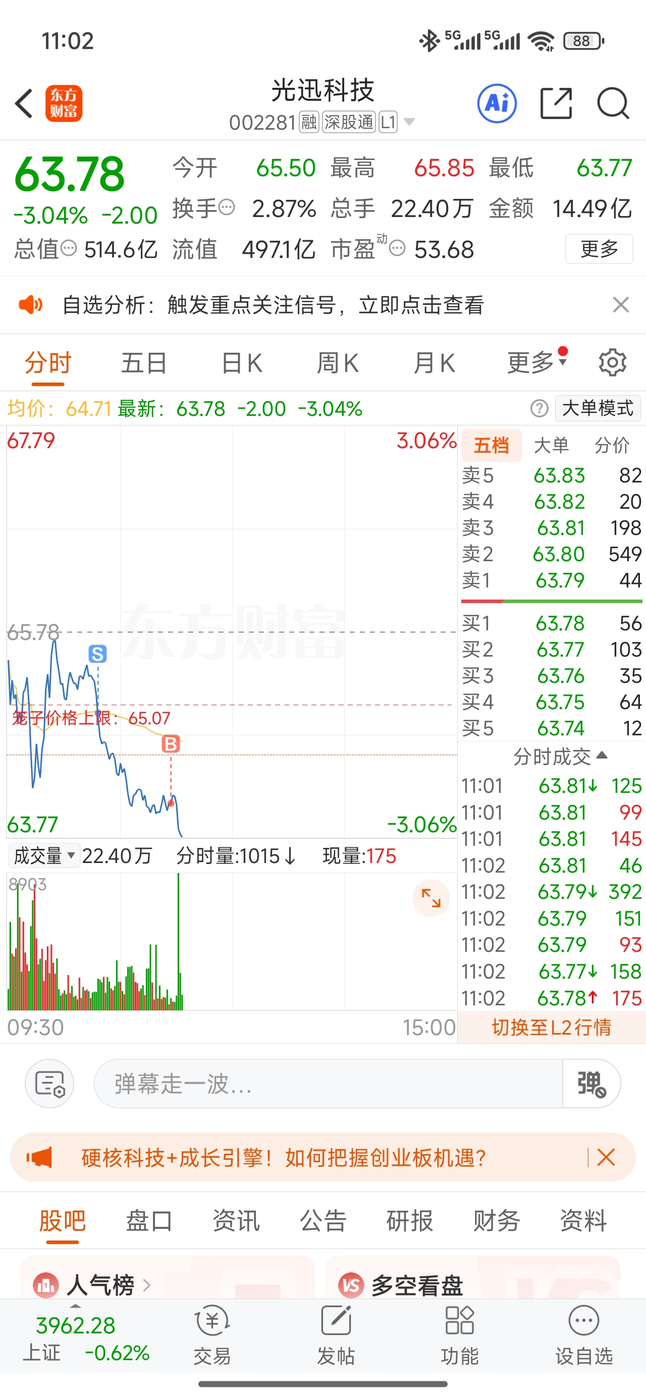 $光迅科技(SZ002281)$ 真是,刚接回来,就砸了!!!!