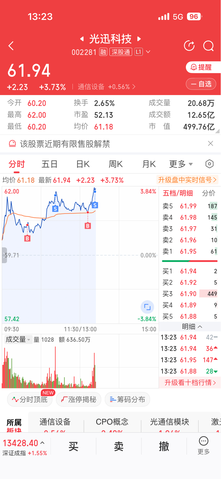 $光迅科技(SZ002281)$ 做个T