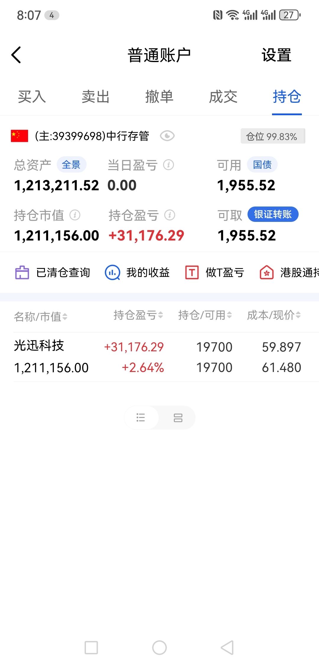 全仓光迅科技!等起飞!股票风险慎重买卖!阿弥陀佛!