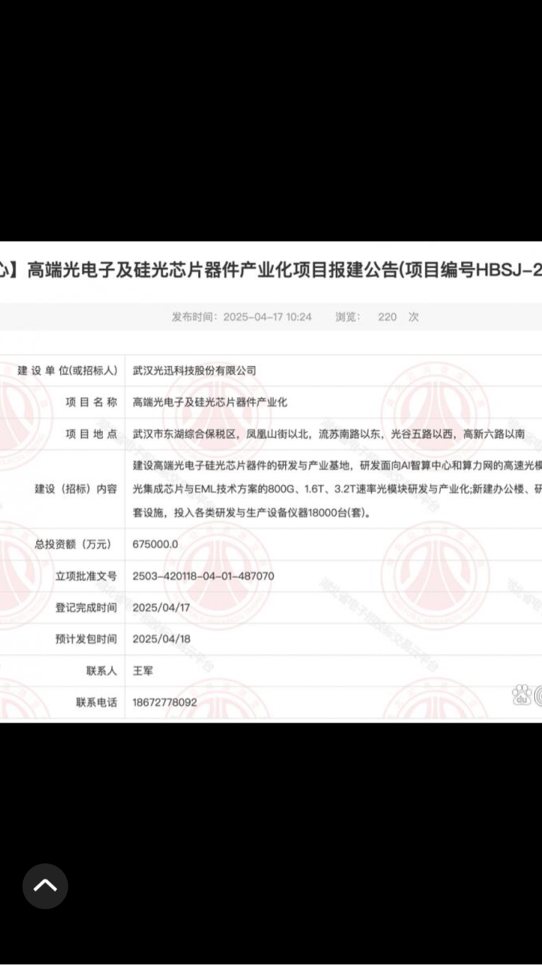 $光迅科技(SZ002281)$ 公示了