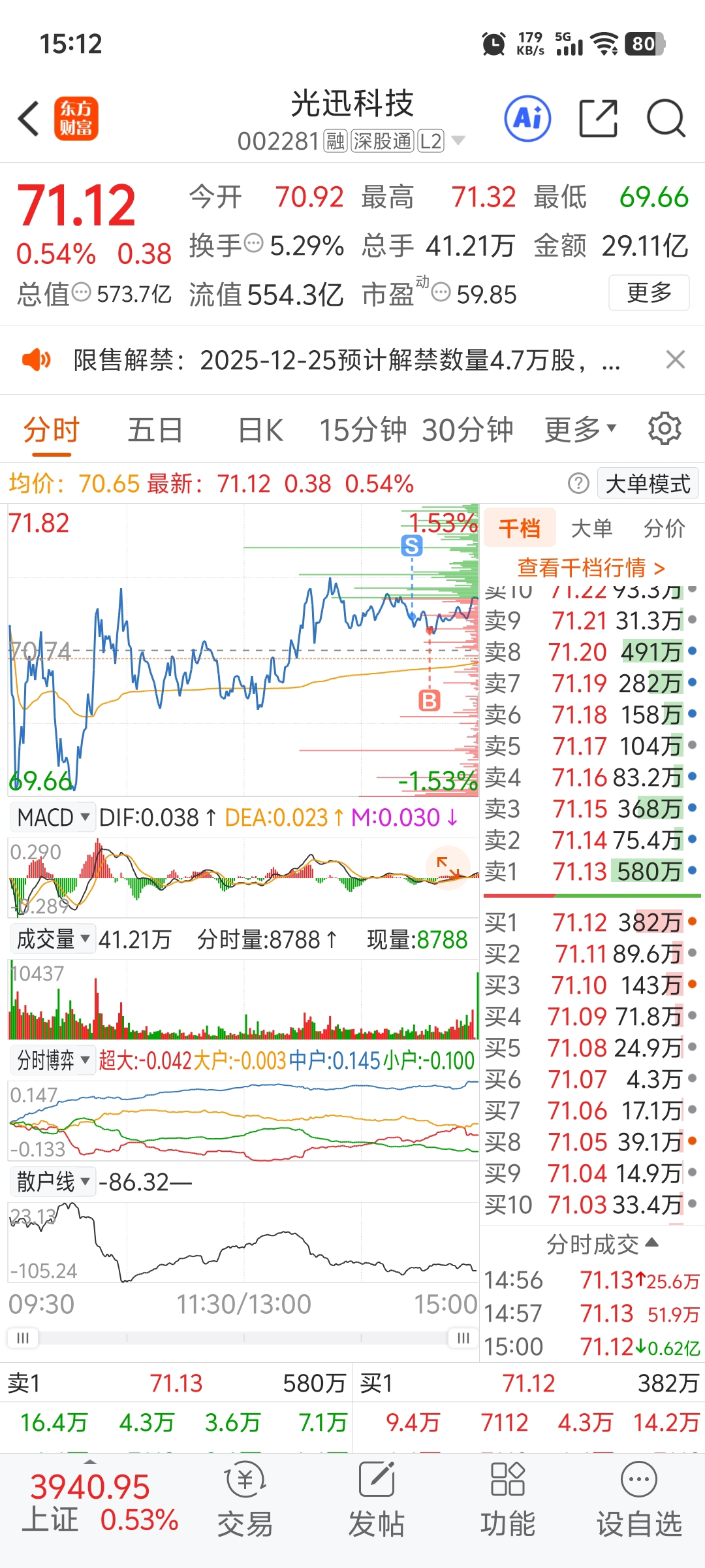 $光迅科技(SZ002281)$ 今天走得没劲儿,尾盘极限做t
