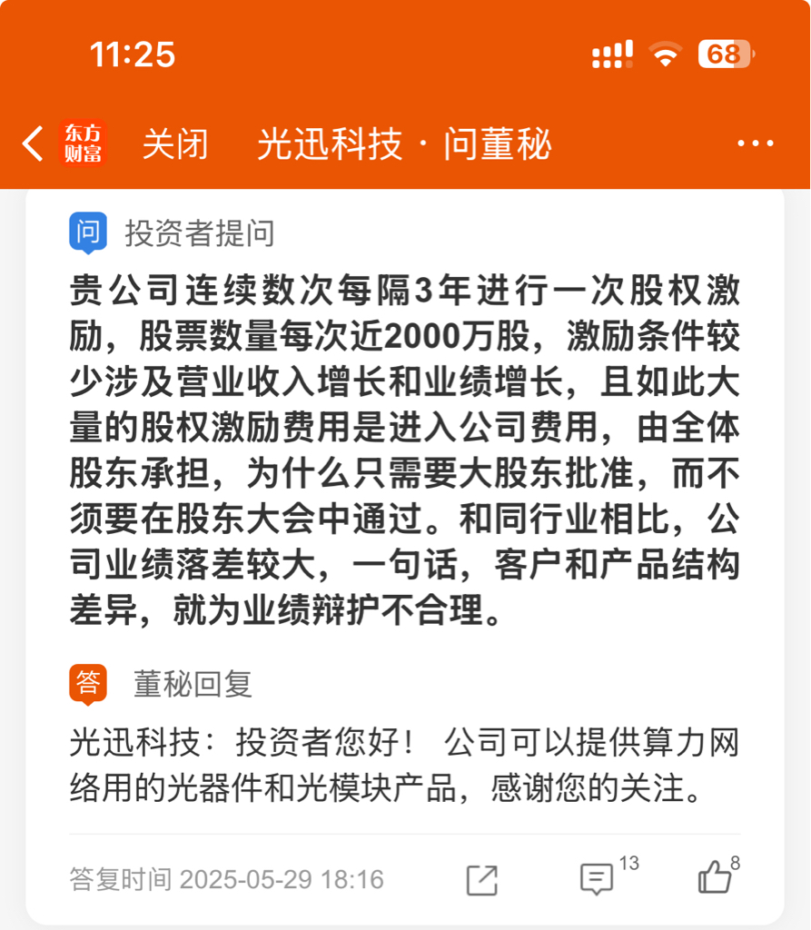 $光迅科技(SZ002281)$ 烂公司光迅科技—我是黄三烂,我技术领先但产品不领先,我不断送样但国外互联网大公司不选择,我成本费用高但利润低,我能从公司拿股票期权赚的多但小散户你亏得不少