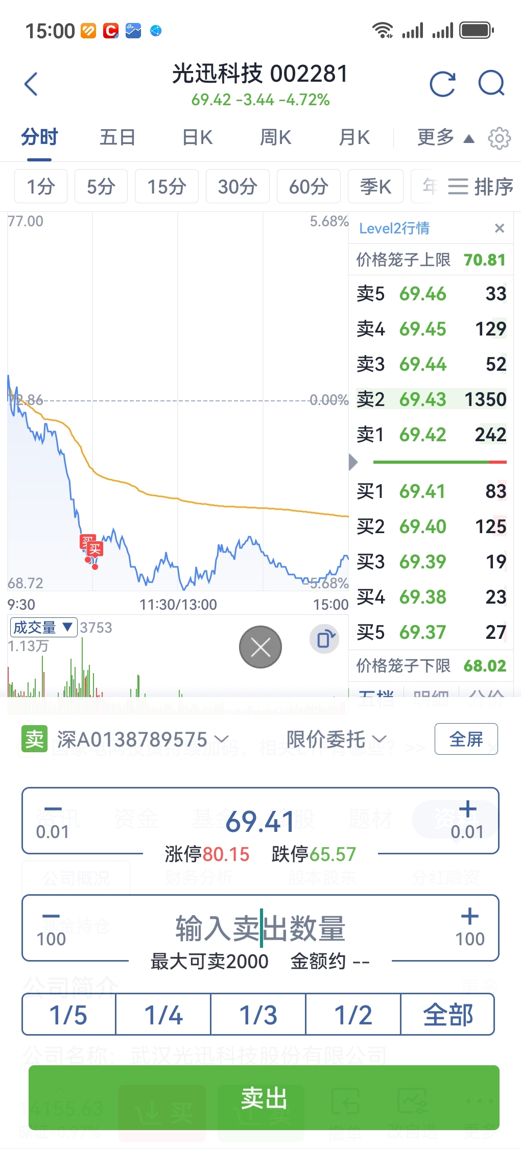 $光迅科技(SZ002281)$ 继续加仓,只要是水下5个点就加,按照自己的节奏来!
