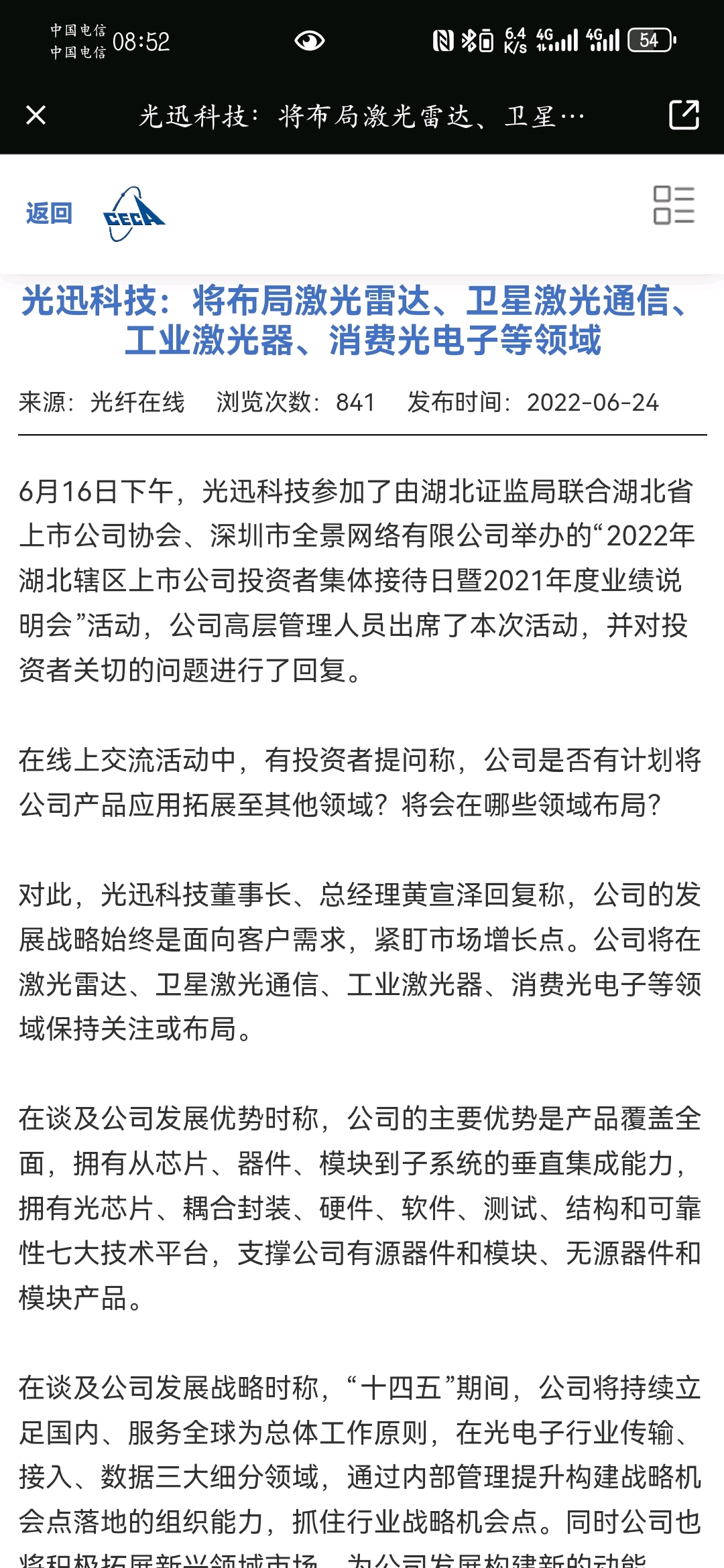$光迅科技(SZ002281)$ 找到了中国电子元件行业协会的一篇报道,应该比较有权威性,说是公司将保持关注,但是不知道有没有,个人认为有的可能性比较大。